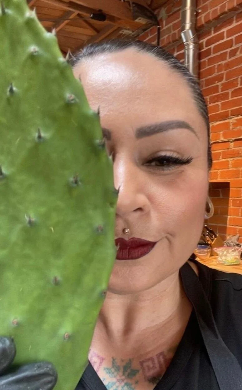 She was born and raised in East Los Angeles, California, predominantly on a Mesoamerican (P’urhépecha, Huasteca, and Zacateco) sazon and diet. She began to cook alongside her elders at an early age, gaining time-tested food knowledge.