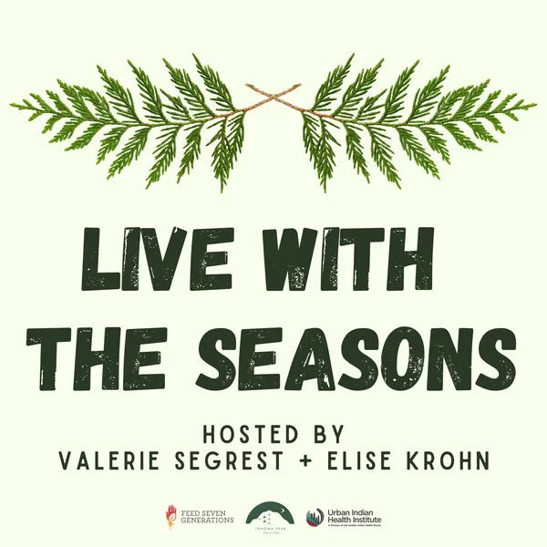 Live with the Seasons is all about plants, seasonal changes, indigenous traditions, and community health. During the coming year, we will release podcasts exploring how the shifts in nature might inform our daily practice, and how we can grow along with the seasons. Each episode will feature some of our friends who will share their perspectives, wisdom, and stories to help us all get by. Join us as we discuss the remarkable connections we share with the seasons as well as skill sets to help us thrive. Live with the Seasons is a collaboration of the Urban Indian Health Institute, Feed Seven Generations, and Tahoma Peak Solutions. It is hosted by Valerie Segrest and Elise Krohn and produced and edited by Maria Givens. Our music is River Spirit by Chenoa Egawa.